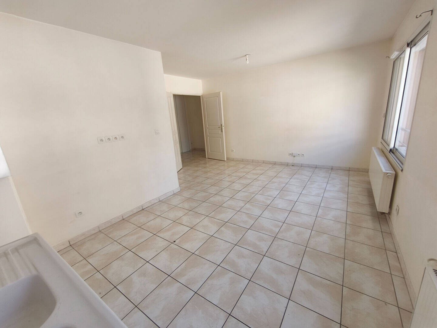 MEXIMIEUX CENTRE VILLE - Joli T2 au 1er étage avec ascenseur dans une résidence sécurisée comprenant : un hall d'entrée avec placard, une pièce de vie ouverte sur coin cuisine, une chambre avec placard, une salle de bain, un toilette séparé.