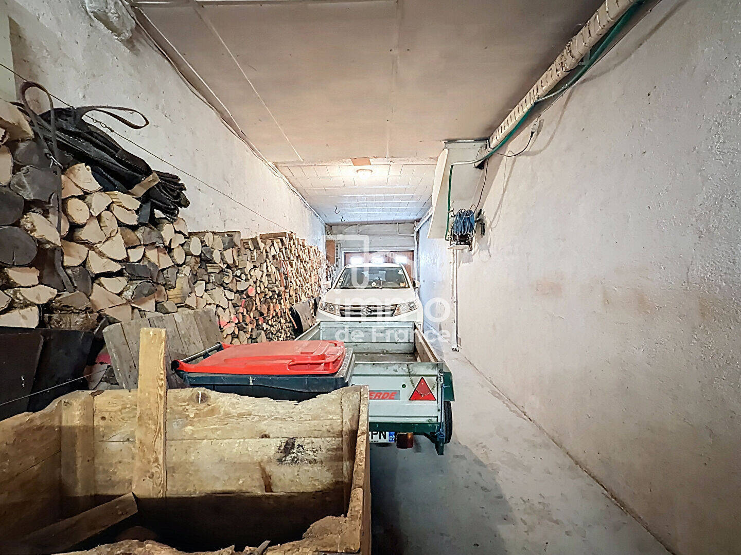 Grand garage double avec espace chaufferie ( Fioul + bois ) et atelier